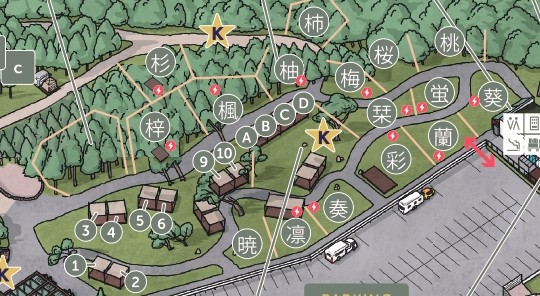 【梅(うめ)】 ■基本料金:(1泊/1区画/電源使用料込み/定員6名までの料金) ■区画サイズ: 5.5m×7m ※木が生えている部分も含めた広さとなっております。 【電源について】 100V10Aの電源利用料がサイト料金に含まれております。 ※ソロキャンプ向けのキャンプサイトです。グループ利用も可能です。